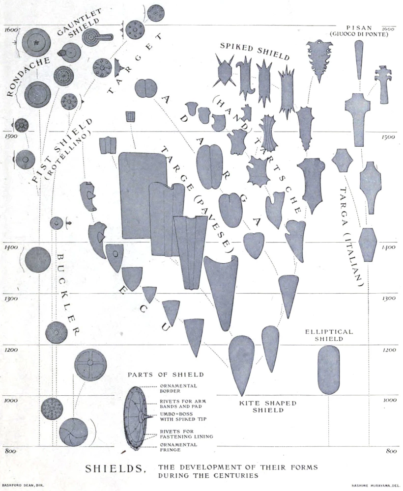 - Shields, the development of their common forms during the centuries