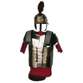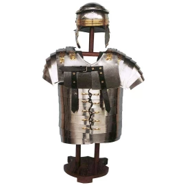 In late 1st century BC in Galia there was developed a new kind of armour which we know as lorica segmentata. This name actually comes from 16th century AD and ancient Romans might call it differently. It was made from several hardened metal segments which allowed speeding the production up considerably. Adopting this technique was not only cost-effective but it also meant that the armour could be easily adjusted to fit any soldier. Another useful feature was its compactness given by its simple construction. It was composed of four separable parts (two shoulders and two lower sections - left and right) held together by riveted leather straps or later by the hooks, so it was very practical for storing or transportation. Although it did not fully replace older kind of loricas, it became one of the symbols of roman legions.
