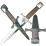 Daggers are short, sharp stabbing weapons. They (like swords) are classified as bladed weapons. Daggers were used for cutting or as a stabbing weapon. Special fencing was popular in particular time. A fencer was holding a sword in one hand and dagger in his second hand during the combat. This dagger was called Parrying dagger. This type of dagger can also be found in our online store.