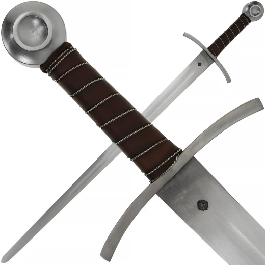 With its design – a slender blade with a gradual taper, a straight guard (Oakeshott Style 1 or 5), and a disc pommel (Oakeshott Type H, I, or J) – the "Elias" sword faithfully recalls the archetypal knightly sword of the High Middle Ages, roughly from the 12th to 14th centuries. According to Oakeshott's typology, it can most likely be classified as a Type XI, which was typical for its length, slenderness, and was often used by both cavalry and infantry. The quality of this replica from Pavel Leier's workshop ensures fidelity to historical examples.