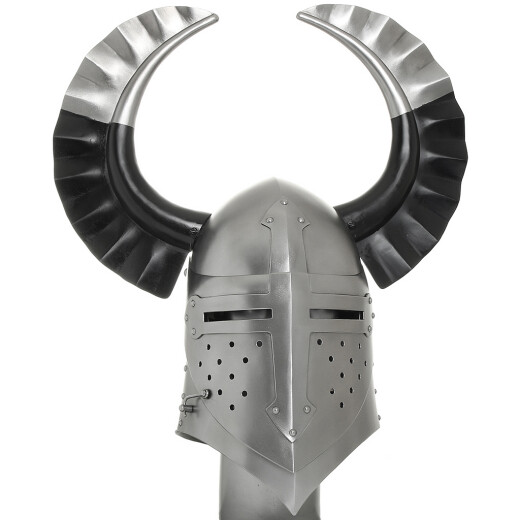 - The great helm comes with a chin strap made of genuine leather.