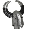 The crest on the helmet is removable. It rests on welded socles where it is secured with screws. The helm can be therefore transported without difficulty, and there is no risk that the crest will get damaged during transport.