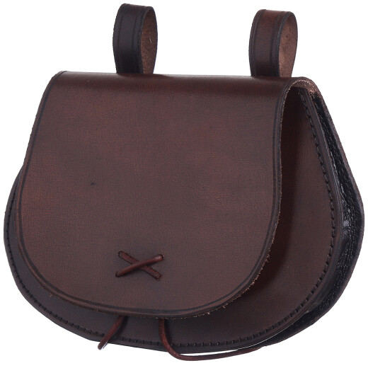 This bag is an interpretation of an archaeological find found on the Shetland Islands from the end of the 12th century. It is made of high quality leather and has two loops on the backside, so that it can be worn on the belt. Further product information ...