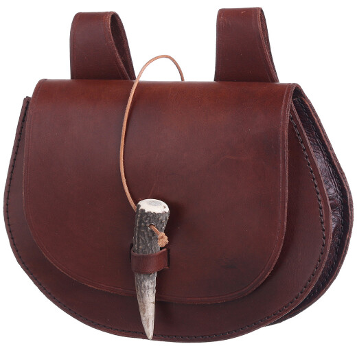 This bag is an interpretation of an archaeological find found on the Shetland Islands from the end of the 12th century. It is made of high quality leather and has two loops on the backside, so that it can be worn on the belt. Further product information ...