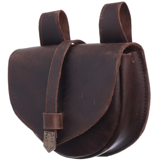 Medieval bag made of genuine cow leather with a material thickness of 2.2mm. On the back of the bag are sewn two loops through which the belt is to be threaded. The bag can be so worn at the waist. The interior is divided into two compartments. Further product information ...