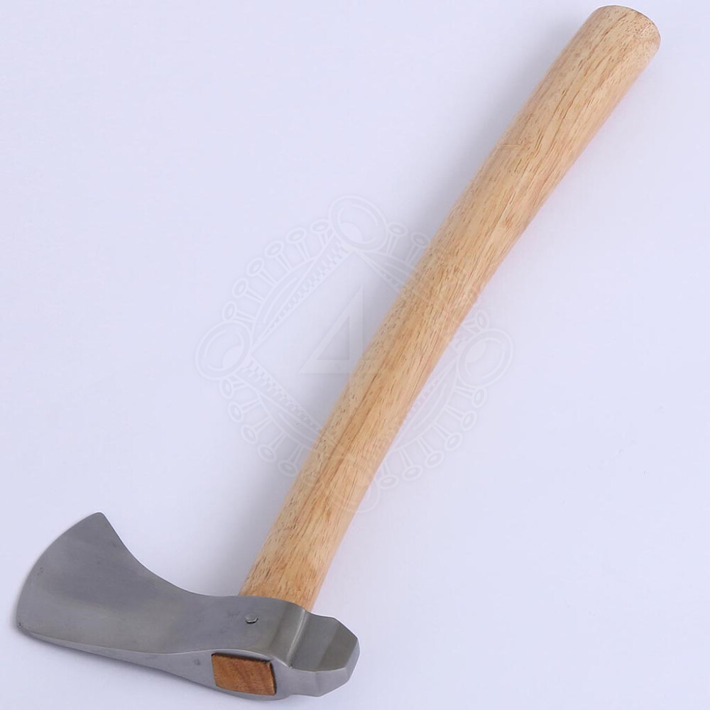 In earlier ages the axes taken to a battle were the same ones used in everyday work. That, however, is not the case with this axe; it was made for war. The down curved, wedge shaped blade coupled with the curved shaft made for a very powerful cutting arc that could shear through mail and badly damage the simple plate that was in use at the time. When reversed, all of the force of the blow was concentrated on the back hammer poll and could crush a helmet. In the hands of a mounted knight this type of heavy headed axe was devastating to men on the ground and on horseback alike. It could split mail helms and shields, and the extended back poll could easily crush bone. The curve of the hardwood shaft added to the power of the blow. This is an excellent fighting axe and a devastating “high-tech” weapon for its age. Further product information ...