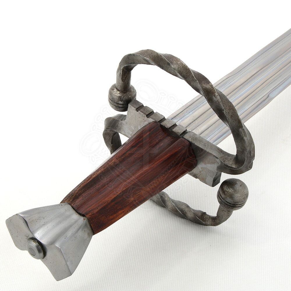 The tip of this replica is rounded and edge is 2mm thick (i.e. blunt). The sword is thus suitable for light show combats and and fencing exercises, but we can not take any warranty against breakage. The blade has three grooves.