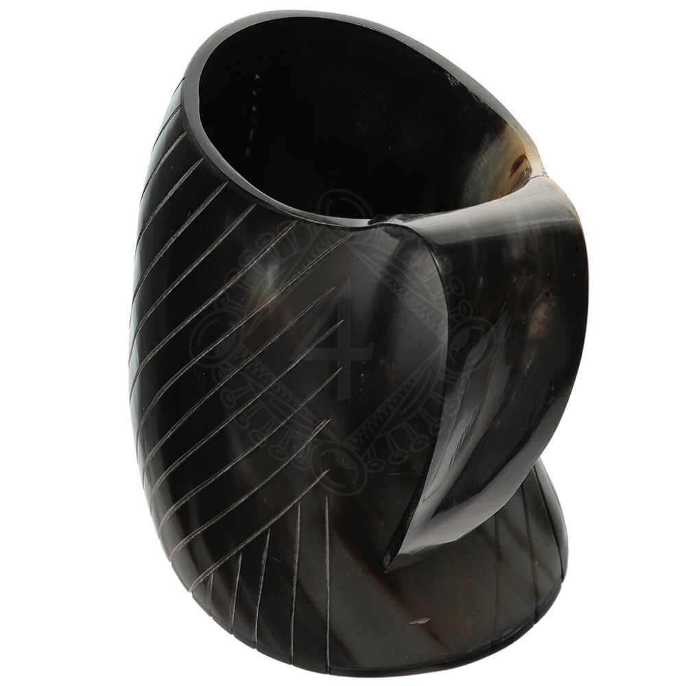 Made from 100% ethically sourced cattle horns. The bottom is made of plastic. The entire interior is treated with food-grade resin to prevent beverage leakage. This drink container meets strict hygiene standards for the contact with food.