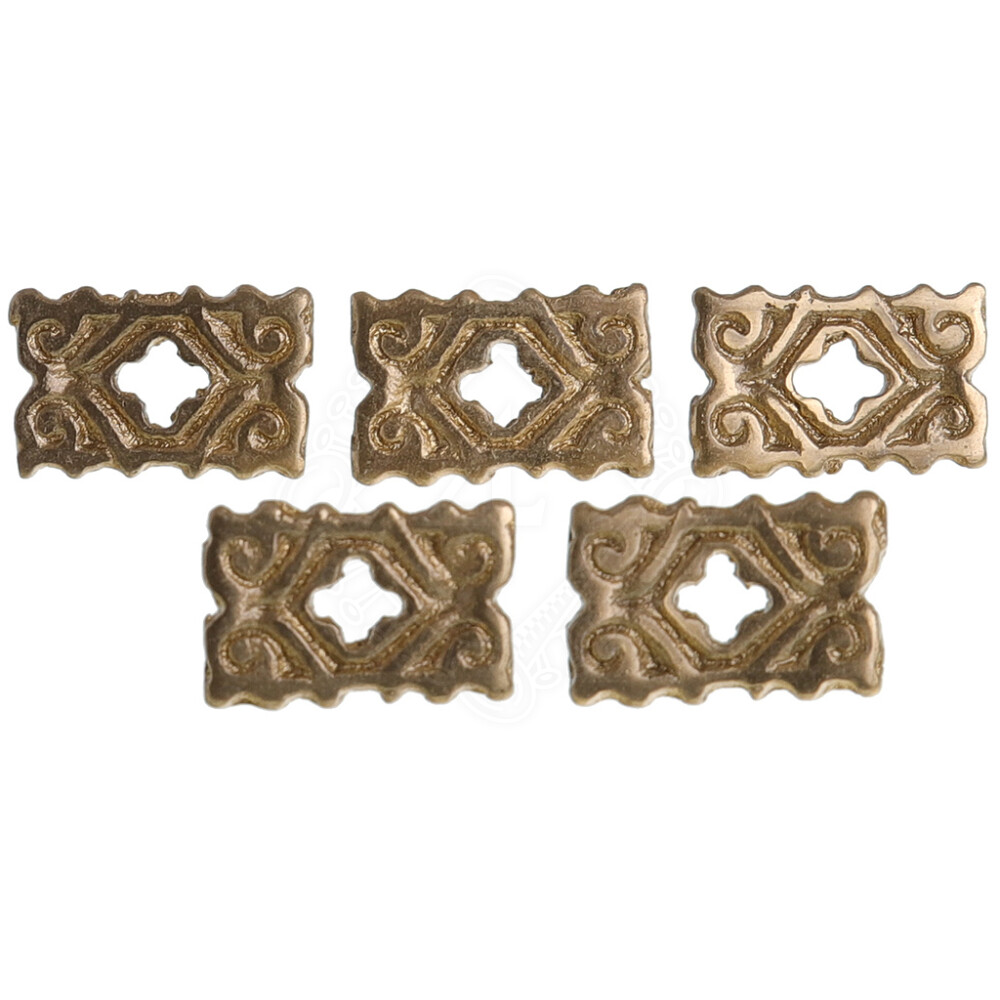These versatile mounts are designed primarily for decorating leather belts. However, they are also perfectly suited for bag straps, pouch flaps, the covers of leather-bound books, or as decorative elements on leather armour pieces like pauldrons or bracers. Thanks to the two integrated rivet posts on the back, they can be attached securely and reliably.