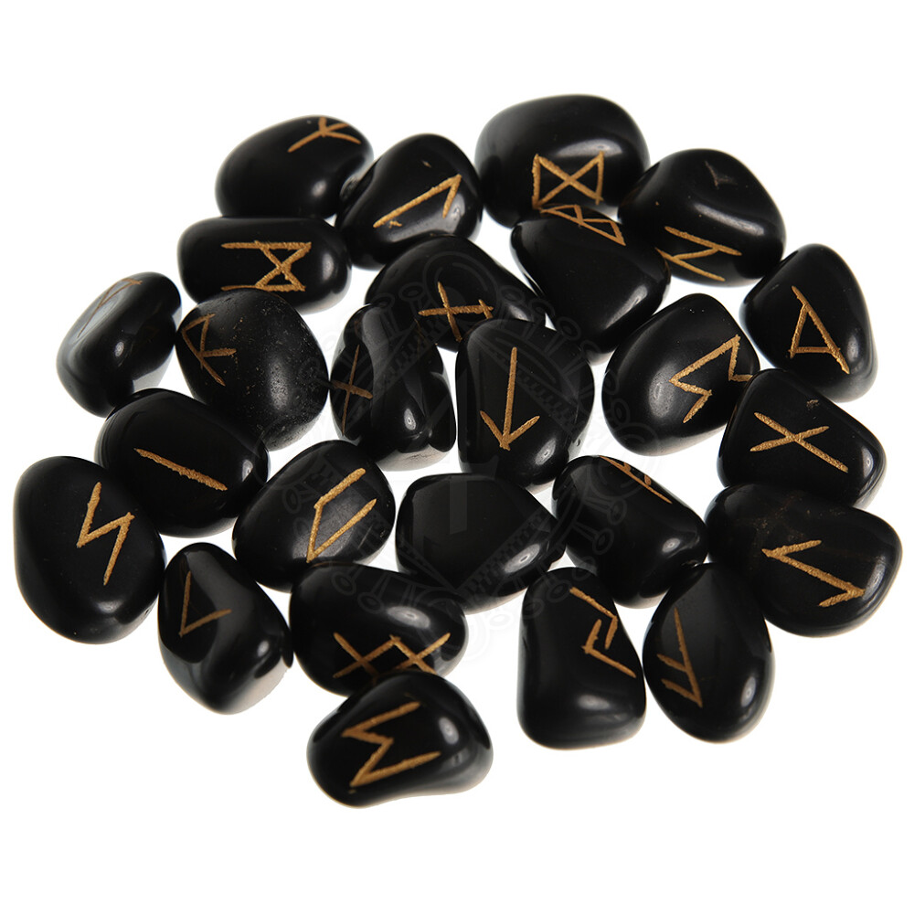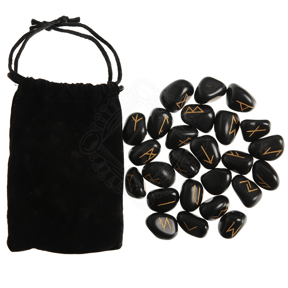 Viking Rune Stones Set made of Black Onyx in Velvet Pouch