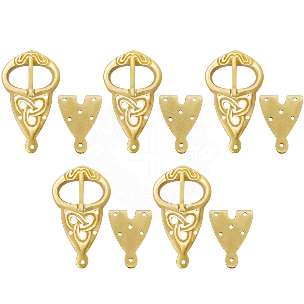 Set of 5 Brass Viking Belt Buckles with Strap Ends – Celtic Knot - Outlet