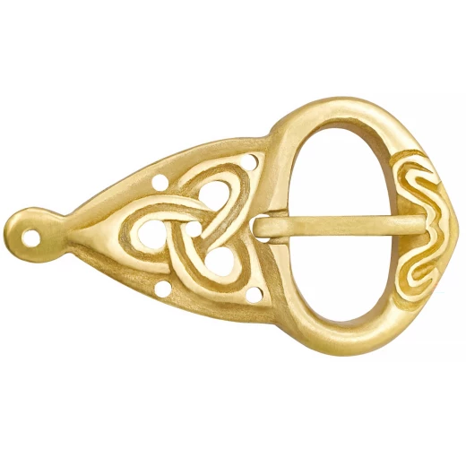 Are you looking to equip your entire warband, planning to craft several belts, or are you a leatherworker seeking high-quality fittings? This cost-effective set includes five complete sets of cast brass buckles and matching strap ends. The design is inspired by Norse and Insular art of the Early Middle Ages, dominated by a Celtic knot motif. This set is the ideal choice for creating historical costumes for reenactment, LARP, or for stylish everyday wear if you want to add a touch of the Viking era to your wardrobe. Further product information ...