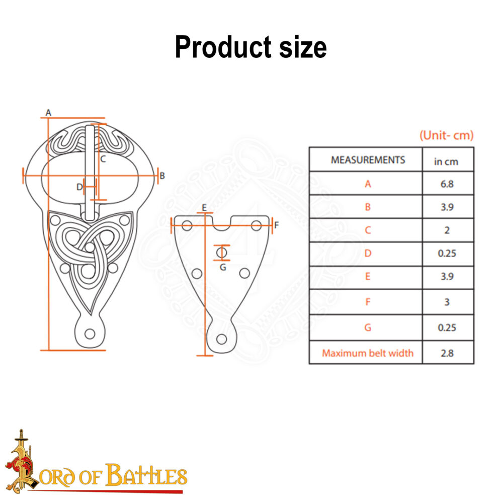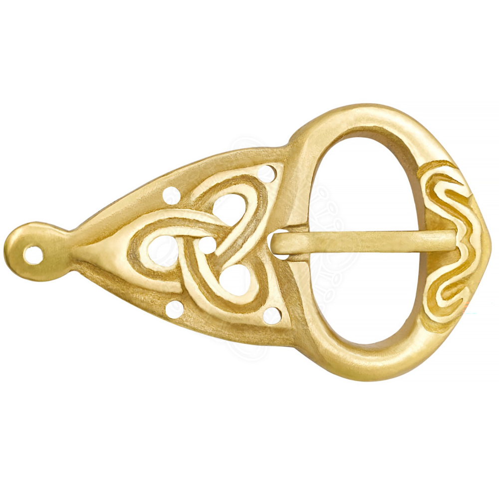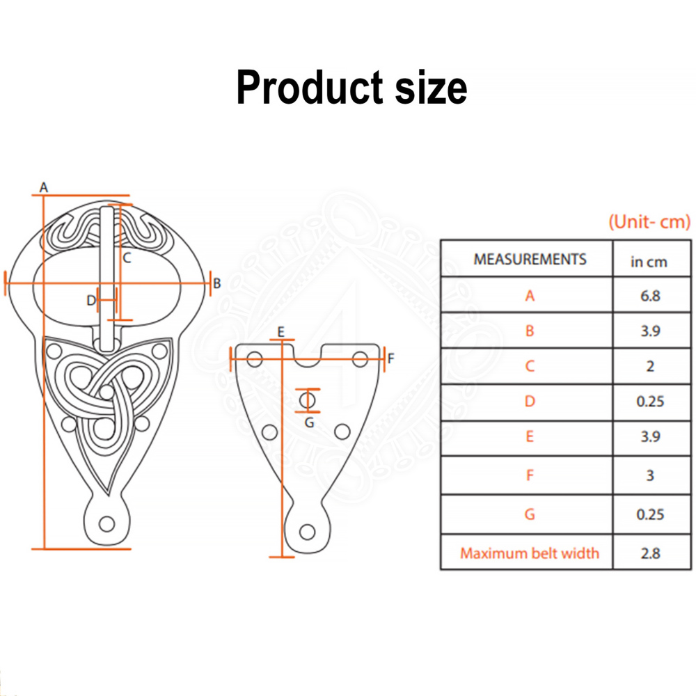 - Buckle with Integrated Plate: The body of the buckle features a classic "D" shape that transitions smoothly into a triangular mounting plate. This plate is decorated with an openwork Triquetra (trinity knot) motif, which is typical of both Viking and Celtic art.