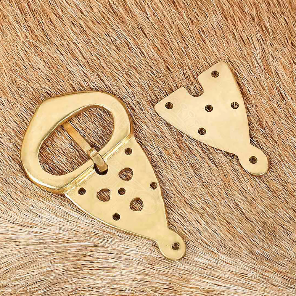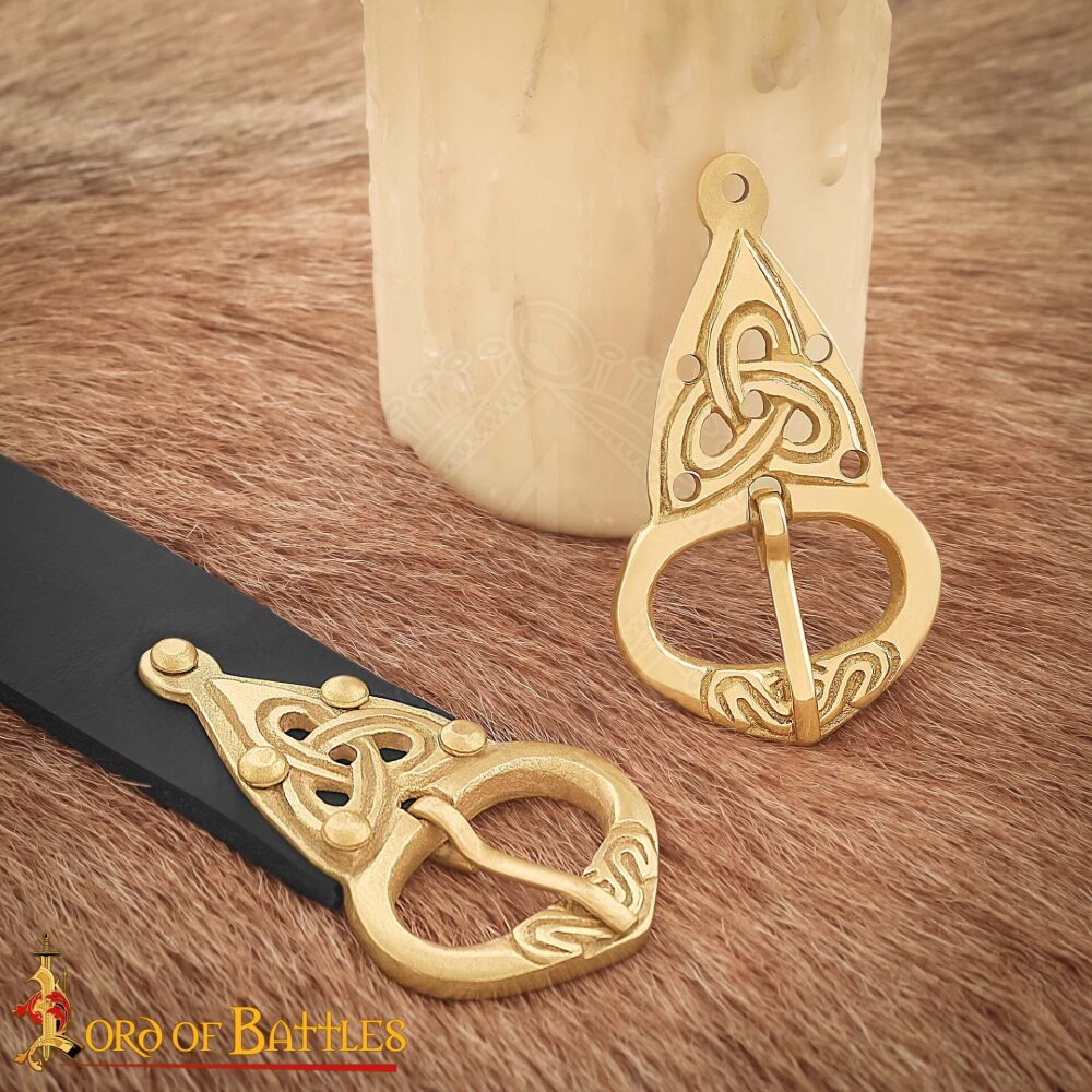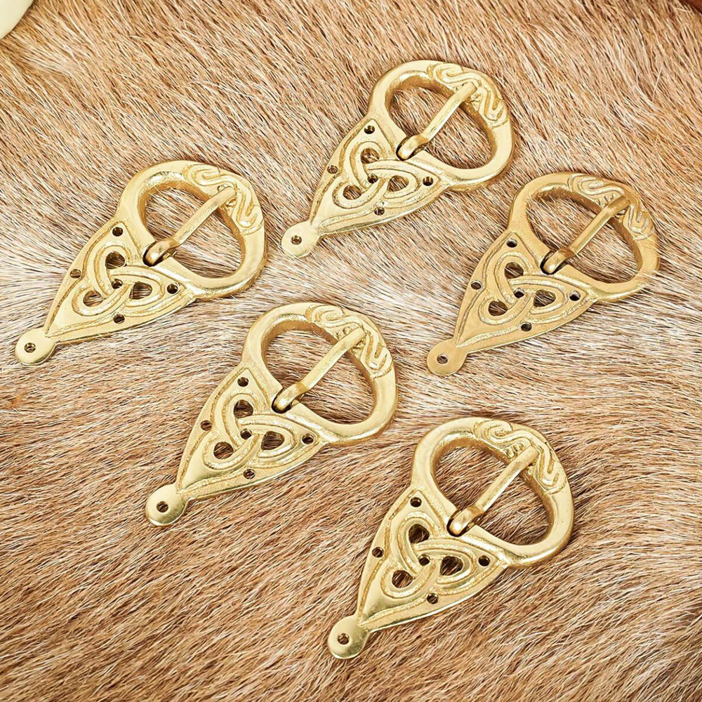 Set of 5 Brass Viking Belt Buckles with Strap Ends – Celtic Knot