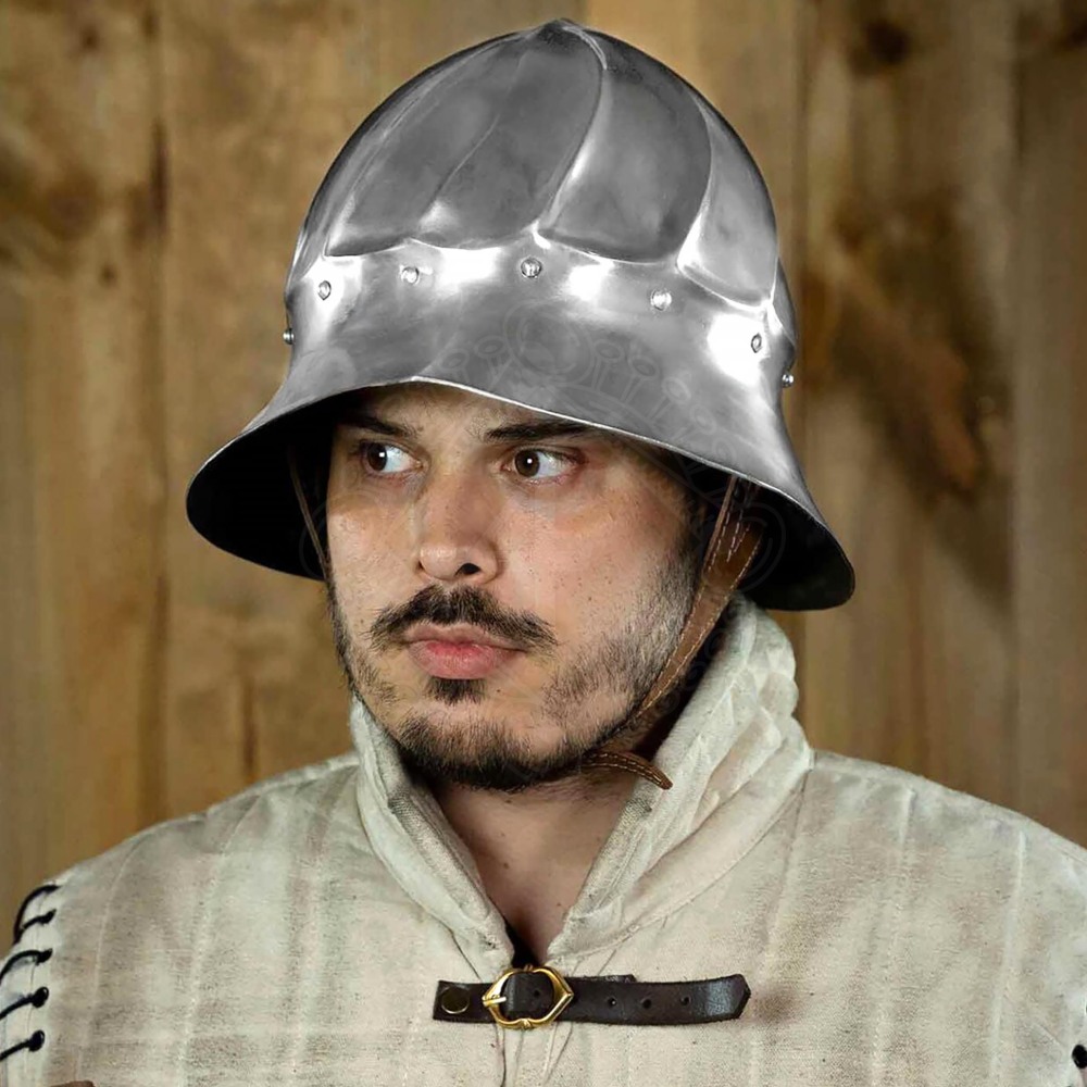 Are you looking for a helmet that combines Late Medieval elegance with uncompromising functionality? This Burgundian Kettle Hat is a masterful reproduction of an artifact from c. 1475, currently admired by visitors to the Metropolitan Museum of Art in New York. It is not just simple head protection; it is the hallmark of an elite mercenary or pikeman in the service of wealthy Burgundian dukes. Thanks to its sophisticated shape and decorative fluting, it provides you with not only safety but also respect on the battlefield. Whether you are preparing for a battle reenactment, LARP, or want to add a piece inspired by real history to your collection, this helmet will not disappoint. Further product information ...