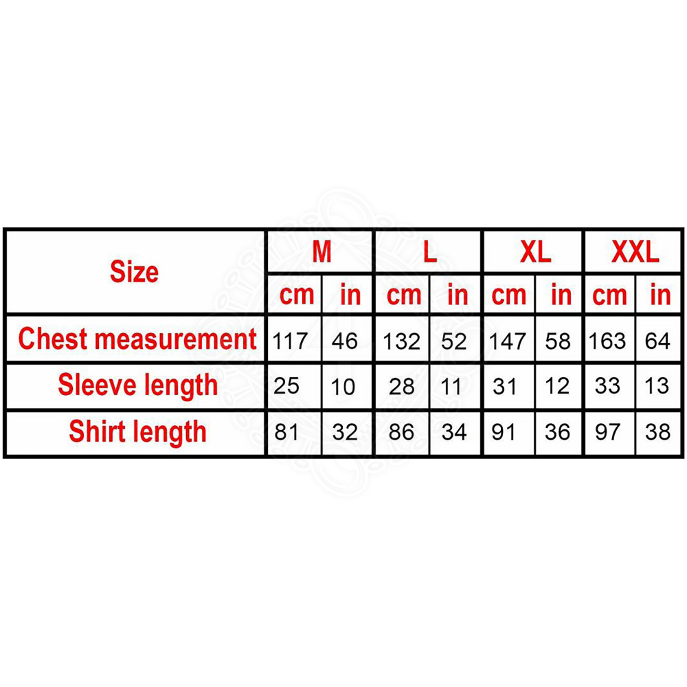 | Size | Fits Chest Size (w/ padding) | C - Chest Circumference (Armour) | B - Overall Length | D - Sleeve Length | A - Sleeve Opening |