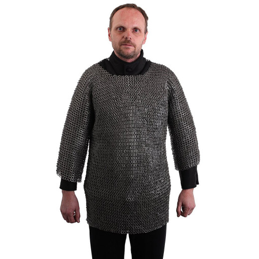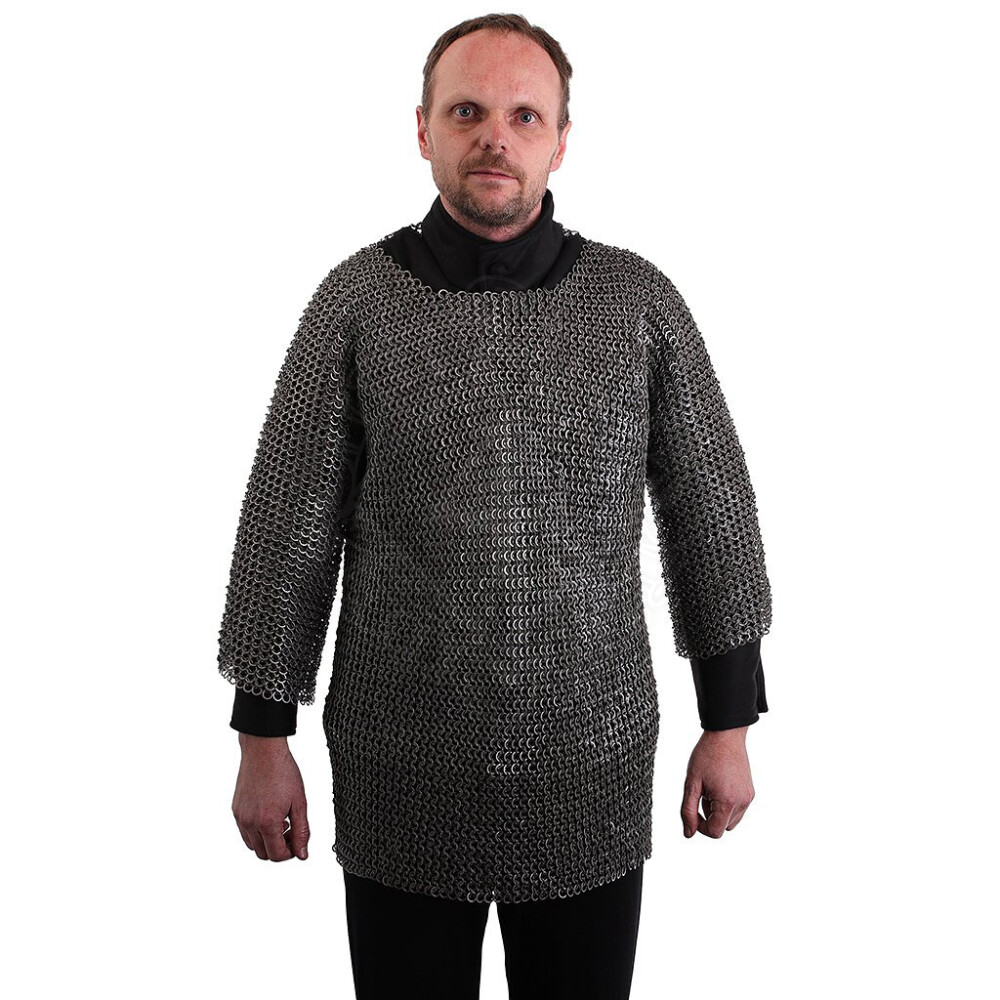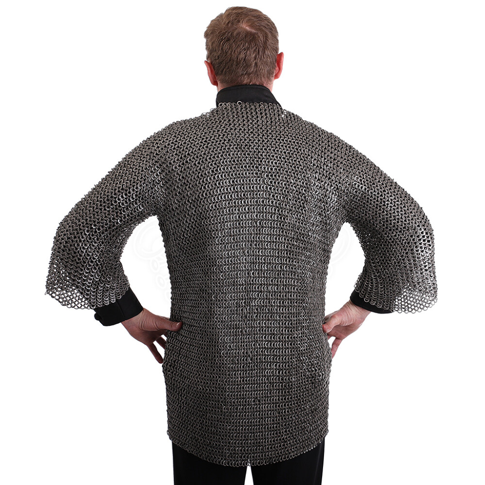 Long-Sleeve Chainmail Haubergeon, 9mm Flat Riveted/Solid Steel