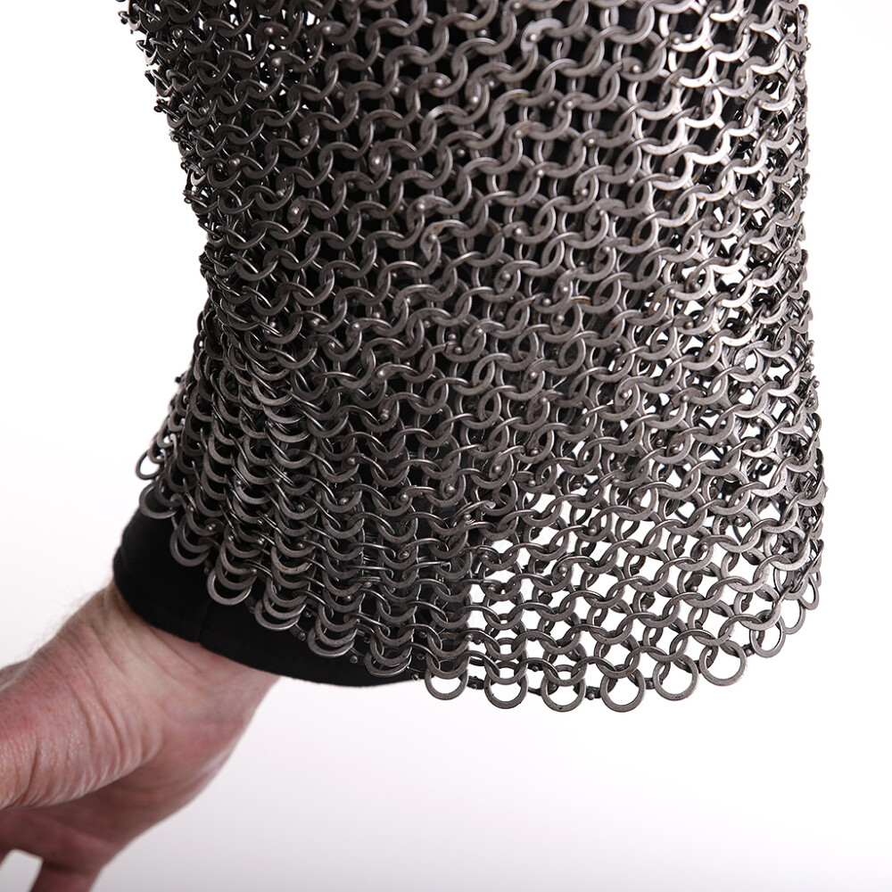 - Strength of Riveted & Solid Rings: Every other flat ring is securely dome-riveted, while the alternating rings are solid, stamped from steel. This method ensures the mail will not fail even under powerful blows, unlike cheaper butted mail.