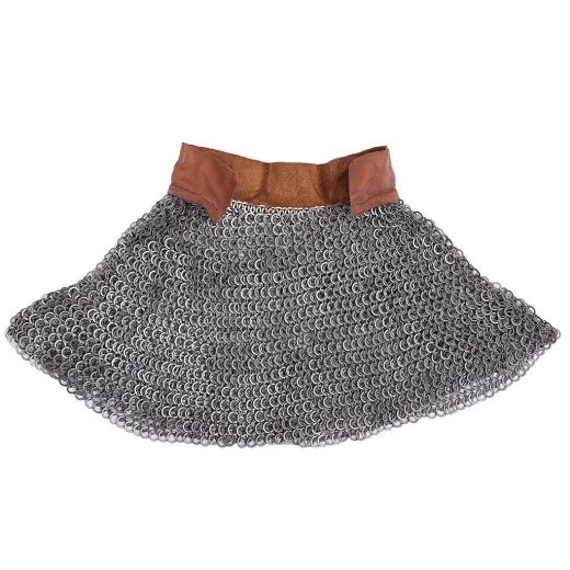 An aventail is a piece of chainmail that is designed to be suspended from a helm and protects the throat, neck and shoulders. To fit the aventail we recommend using a woven waxed linen or leather cord.