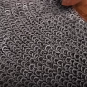 Mild Steel, Round Ring, Round riveted, 8mm, 18gauge | This riveted aventail is made from 1.2mm thick round riveted 9mm rings with alternating solid flat rings for extra durability. An aventail is a piece of chainmail that is designed to be suspended from a helm and protects the throat, neck and shoulders.To fit the aventail we recommend using a woven waxed linen or leather cord. Further product information ...