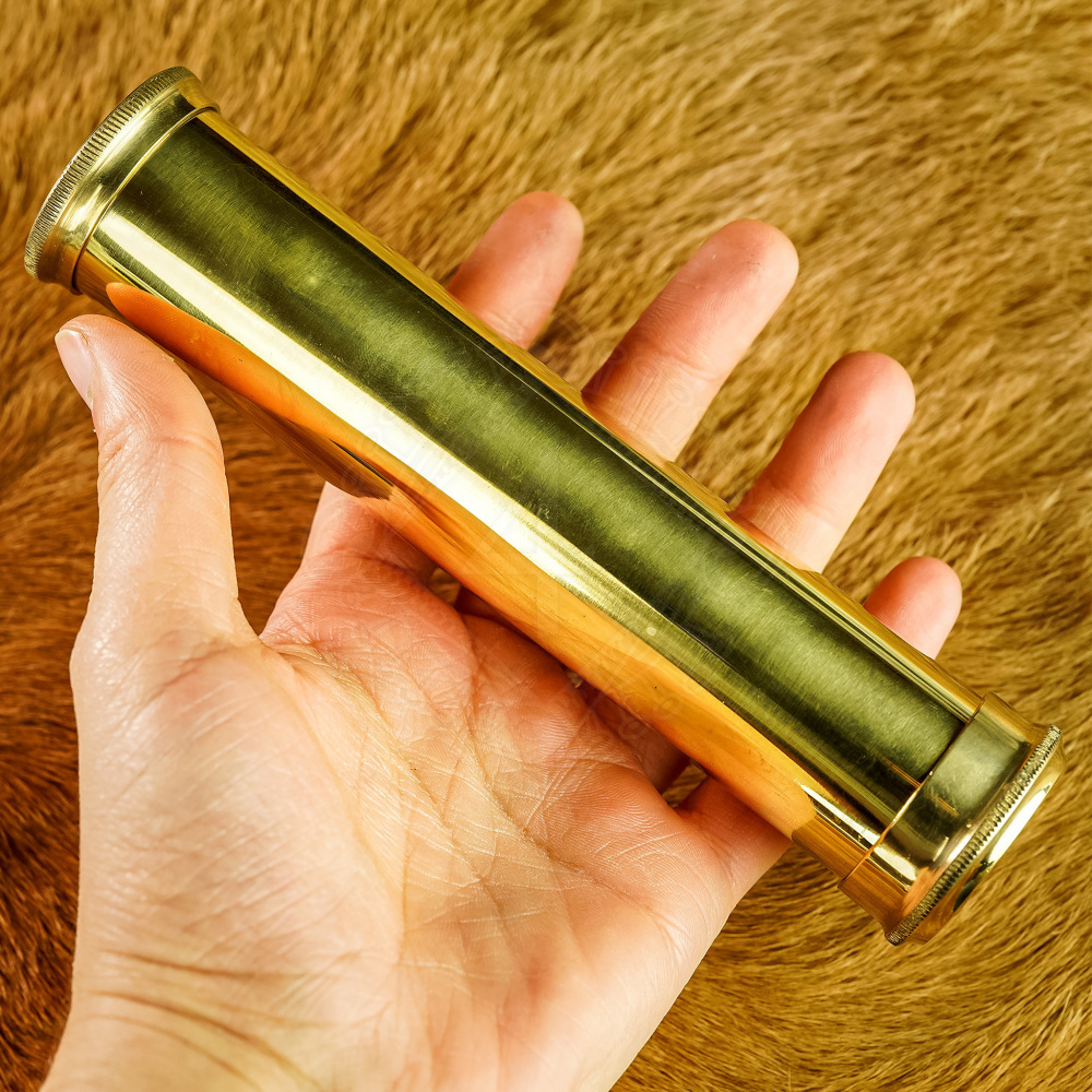 This kaleidoscope is made with an emphasis on detail and historical authenticity. Its smooth, cylindrical body of polished brass fits perfectly in your hand, and the knurled edges at both ends make it easy to handle. Using it is very simple: