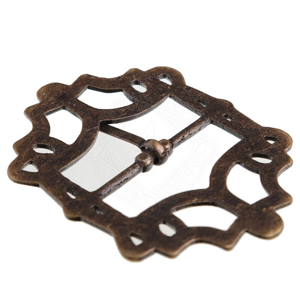 This buckle boasts an intricate openwork (fenestrated) design with elegant curves and scalloped contours, typical of decorative metalwork from the Gothic and Renaissance eras. In those times, buckles were not just functional items but also important status symbols. Richly decorated brass accessories were worn by nobility, wealthy merchants, and soldiers to display their wealth and taste. This replica beautifully captures the spirit of that age.