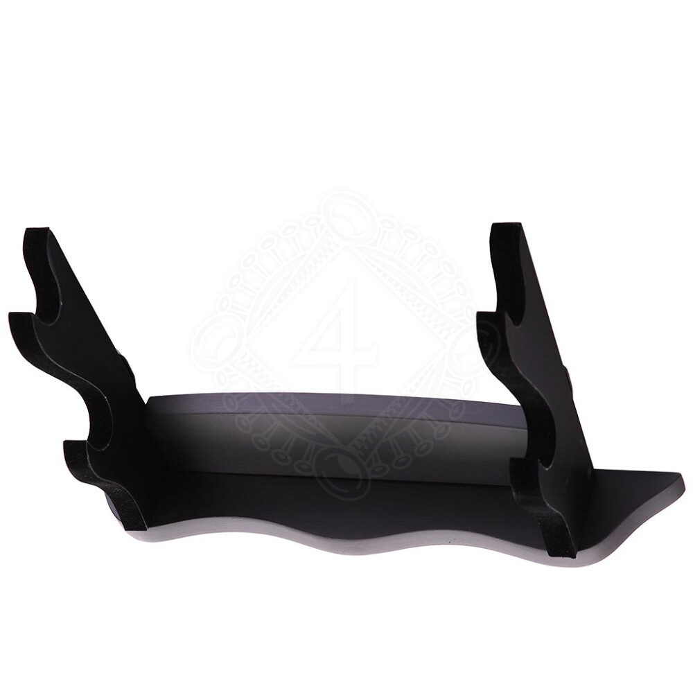 Are you looking for a dignified yet practical place for the most prized pieces in your collection of bladed weapons? With this elegant wooden stand, you can stylishly display two swords, axes, maces, or other weapons at once. Its minimalist design with a dark stained finish allows the beauty of the weapons themselves to shine, becoming a tasteful addition to your interior. The contact surfaces are fitted with soft velvet, which will reliably protect the polished surface of your katana's scabbard or the finish of your Viking axe from scratches. The greatest advantage of this stand is its versatility – you can place it on a shelf, table, or chest of drawers, or simply hang it on the wall using the pre-installed brackets. Further product information ...