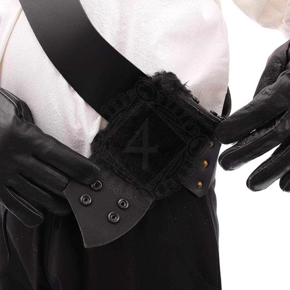 Its most distinctive feature is the scabbard holder itself. The interior is lined with black faux fur, which protects your scabbard from scratches while enabling an incredibly smooth and swift draw. Your blade glides out without unnecessary friction. The holder fastens with four heavy-duty metal press studs (snaps) that will reliably secure even heavier weapons.