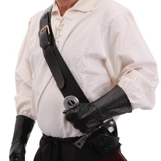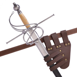 1xCarry your sword, sabre, or rapier with the style and assurance of a seasoned warrior. This honestly handcrafted baldric is designed to keep your weapon securely in place while freeing your hands for combat, ceremony, or performance. Inspired by historical designs from the late Middle Ages through the Renaissance, it offers the perfect blend of functionality and authentic looks for any swordsman, LARP hero, or cosplayer. This model is designed exclusively for right-handed users. Further product information ...