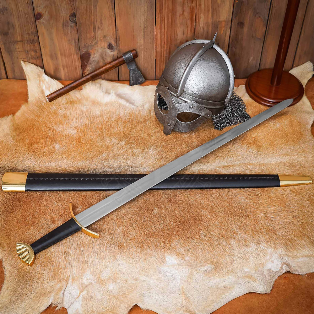 9th Century Viking Sword with 5-Lobe Brass Pommel and Scabbard