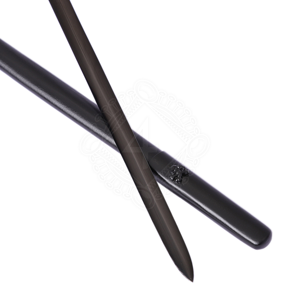 Pitch Black Pirate Rapier with Skull Motif and Scabbard - Outlet