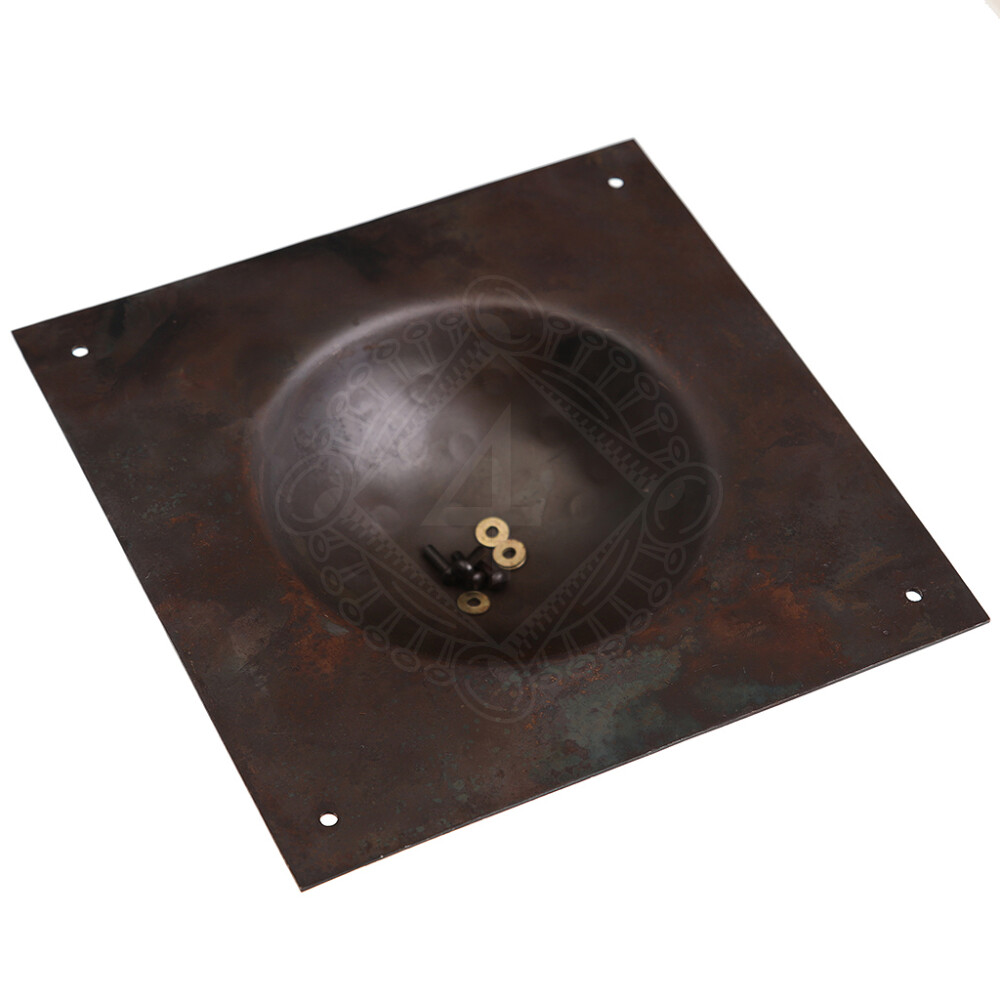 This type of square shield boss is suitable for the Roman scutum shield. It has a hammered finish that imitates a forged look. It is available in two material thicknesses and comes with rivets suitable for attaching it to the shield. As this product is individually handcrafted, slight variations in size and surface texture may occur. Further product information ...
