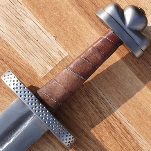 Ich habe das Schwert in "Vollausstattung", also poliert und geschmiedet in Schaukampfversion, also stumpf, geschenkt bekommen. Das Schwert ist mit 78cm Klingenlänge sowie 1,7kg Gewicht deutlich länger und auch schwerer wie viele der üblichen Wikischwerter. Das macht es eher zu einem Schwert für einigermaßen fortgeschrittene Schaukämpfer. Aber durch die Länge hat man im Buhurt natürlich, wenn man sich an die die Handhabung gewöhnt hat, einen nicht zu verachtenden Reichweitenvorteil. Der Griff ist breit genug um das Schwert auch mit einem dicken Schutzhandschuh sicher führen zu können. Auch hier ein deutlicher Vorteil, da manchmal die Grifflänge den Schutzhandschuh nicht ausreichend mit einrechnet.