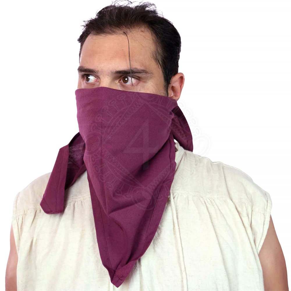 You can wear it classically tied around the crown in "pirate style," which prevents sweat from running into your eyes during fencing or manual labour. It serves equally well as an improvised face mask for bandits and rogues, or as a simple neckerchief to protect your neck from armour chafing or sunburn. It is available in two colour variants: dark black for stealthy night operations and rich wine red for those who aren't afraid to be seen.