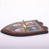 • Solid Foundation: The shield is crafted from pressed wood fibre with a surface veneer and dark-stained edges. The face features a textured, dark blue background, evoking a sense of depth and nobility.