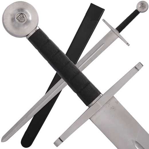 1xSword used in the Medieval Age to fight on a horse back or in the war body to body. They were short swords with broad blade ended in a narrow point, with no ornaments, crossguards built in a very single line and hilts wrapped with leather. Art Gladius introduces this new collection of swords ready to practice using the late fighting technics as in Medieval Age. Further product information ...