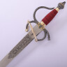 - Cross-guard and pommel made of Zamac, partially painted in gold.