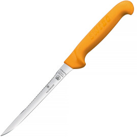 The 12-inch Curved knife is the right knife to break down and fillet larger fish and game. It is perfect for most saltwater fish, large freshwater fish and a variety of game. It excels at helping you break down fish and game into more manageable sizes. The curved blade's length enables you to cut all the way through and gives you the full range of motion needed in order to make a clean cut. It's great for processing wild fish and game, but many chefs also choose this larger breaking knife for processing meat in their own kitchens. Further product information ...