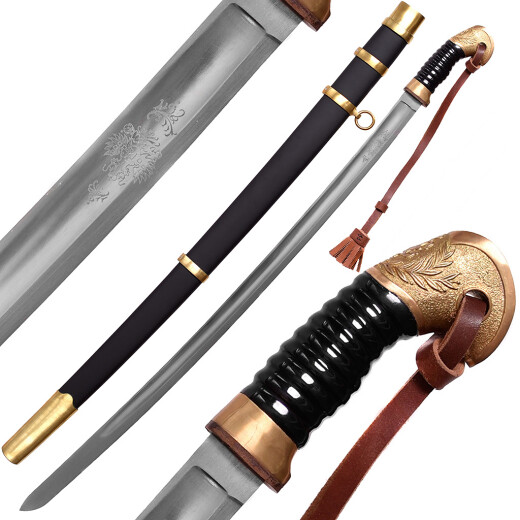 Hanwei's replica features a spring steel blade with the same high flexibility that was demanded in the originals. The handling is quick and well balanced for swift parries and attacks. The imperial crest is etched into the blade. Further product information ...