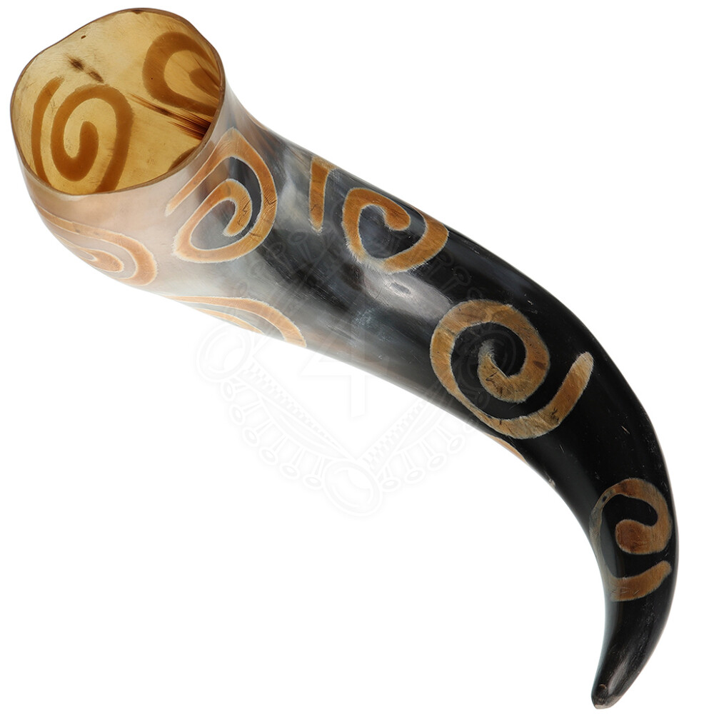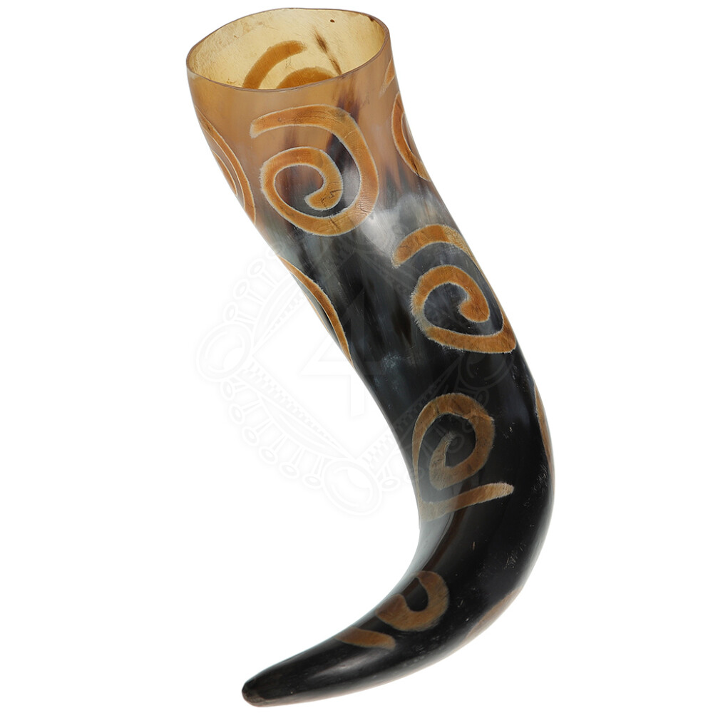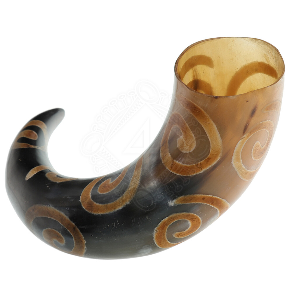 While drinking horns are inextricably linked with the Vikings, their history is much older and richer. They were used throughout Europe, especially among the Celtic tribes, for whom they held deep ritualistic significance. The spiral motif you see on this horn was a dominant theme in Celtic art. The spiral is one of humanity's oldest symbols, representing the cycle of life, death, and rebirth, the journey of the sun across the sky, or spiritual growth. By holding this horn, you are touching not only history but also deep, ancient symbolism.