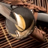 - Handle: approx. 16.5cm long, ray skin w/ brown silk cord wrap & brass Menuki