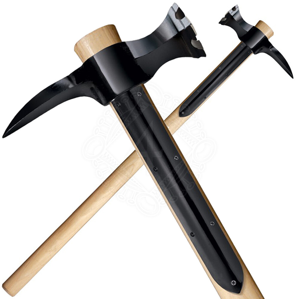 Already proven to be popular with Historical European Martial Artists and re-enactors alike, Cold Steel®'s modern interpretation of the War Hammer is highly maneuverable and can be easily wielded with one or both hands. The head is drop forged out of 1055 high carbon steel and differentially heat-treated: The point of the spike and hammer face are fully hardened so they can pierce and crush tough materials, while the rest of the hammer is forged to be softer to absorb the shock of heavy blows. The handle is 30 in. (approx. 76cm) of straight grain American hickory topped with a pair of sturdy steel langettes. Further product information ...