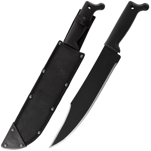 Fully sharpened (since 2016 on both main and false edges on customers' request), with a tough baked-on matte black rust-resistant coating and equipped with a sturdy Core-Ex™ sheath, this machete will be a proud addition to your collection.