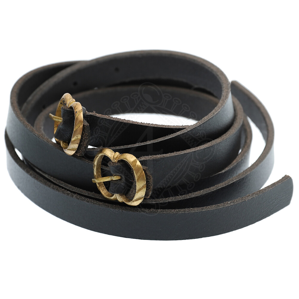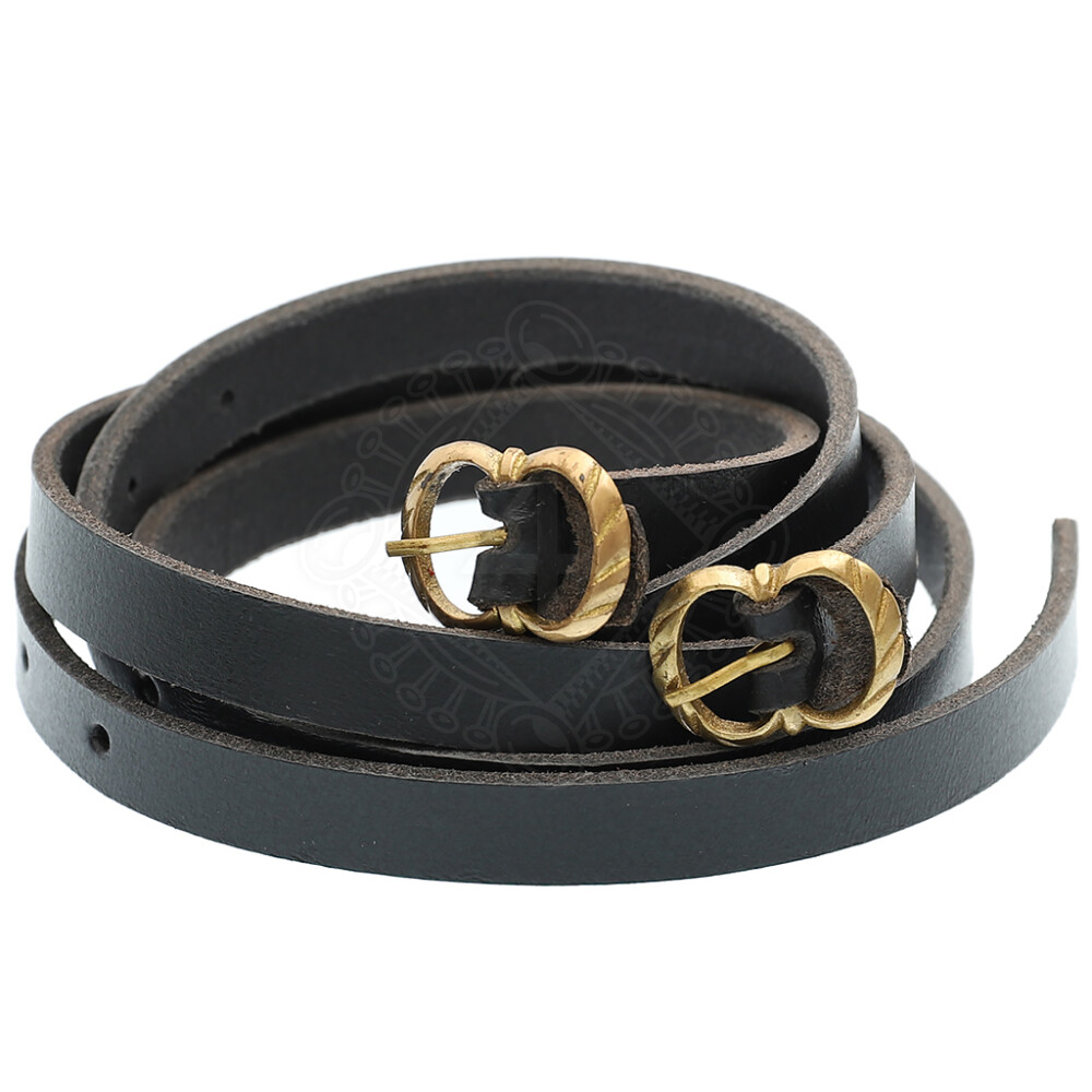 Medieval Leather Leg Garters with Brass Buckles, Pair