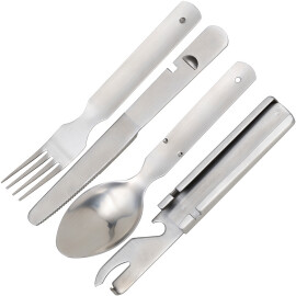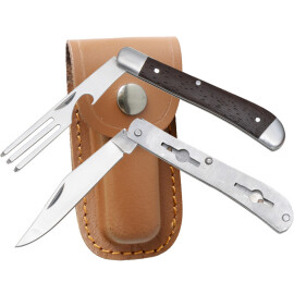 A bottle opener in the style of a butterfly knife. Completely made of stainless steel. The end of the blunt blade serves as a bottle opener. Total length open 230mm. Further product information ...