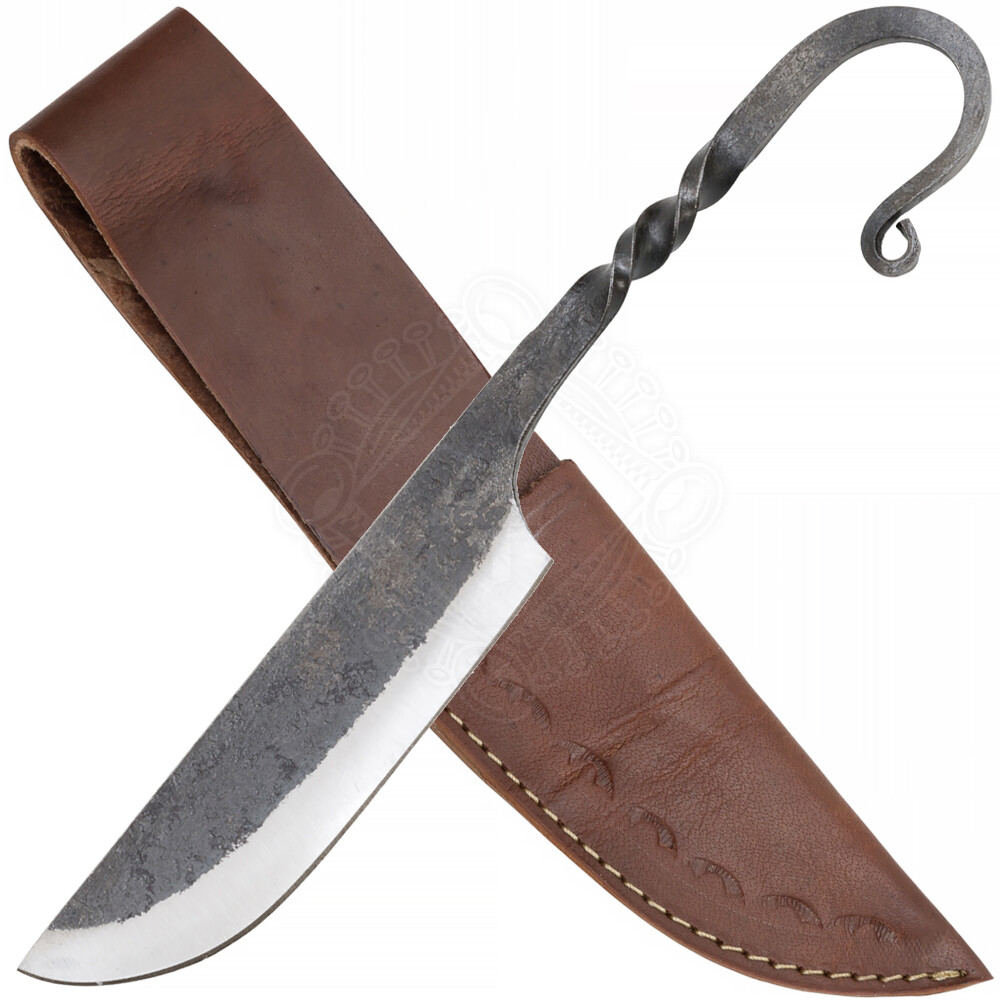 A classic medieval knife. Both the blade and the handle are made of forged carbon steel. Delivery with leather sheath. Further product information ...