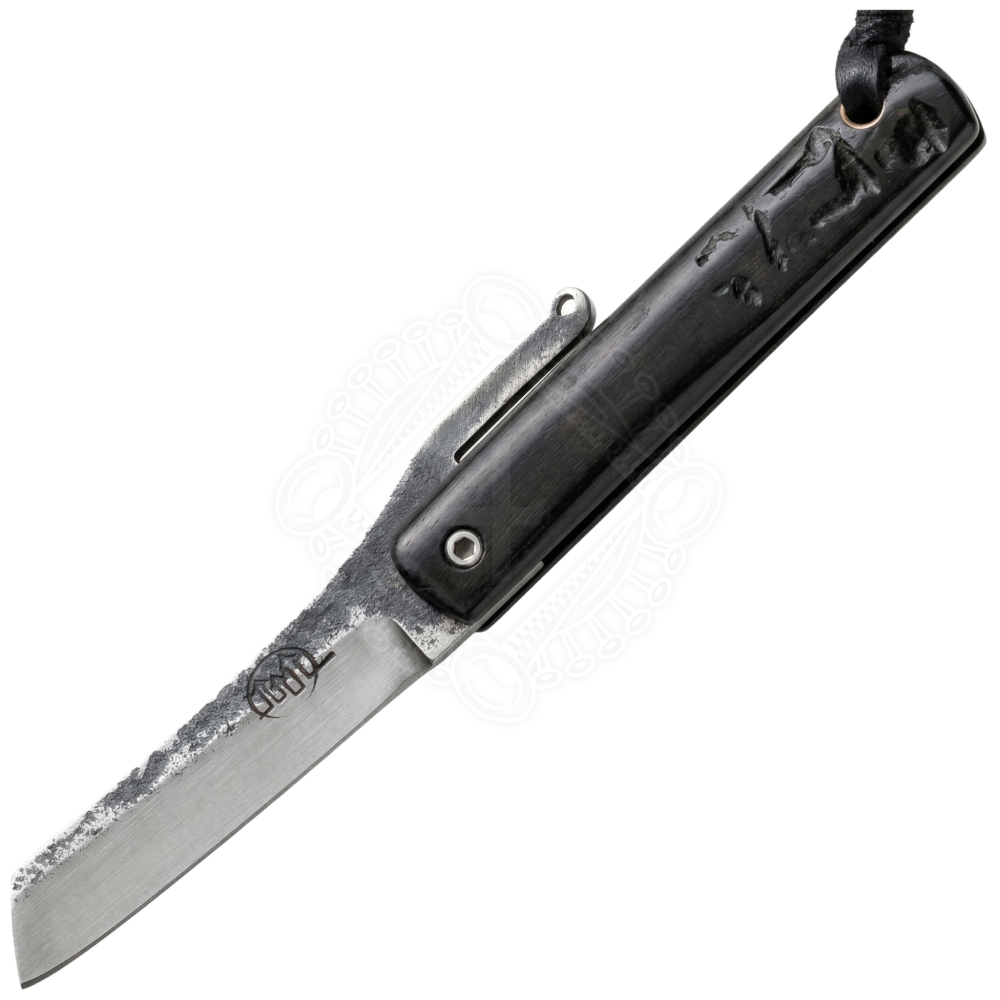 Are you looking for a reliable and stylish everyday carry (EDC) tool that embodies the spirit of old Japan? This hand-forged pocket knife in the traditional Higonokami style will immediately catch your eye with its raw elegance and authentic forge marks. The high-quality carbon steel blade offers extreme sharpness and essential structural flexibility thanks to differential hardening. The handle is masterfully shaped from a single piece of bent natural horn, making the knife a completely unique piece that fits perfectly in your hand. Whether you are a history enthusiast, a bushcraft lover, or simply need a practical pocket blade, this traditional folding knife will become your faithful companion. Further product information ...