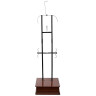 The armour comes with a wooden display stand, which ensures that the armour stands out over most people and increases its attractiveness as display armour. A black metal insert frame holds the armour upright. It works well as display armour for someone who wants authentic and affordable armour.A series of leather straps and brass buckles are used to hold the armour together. The closed helmet has an integrated, adjustable leather lining and a chin strap with brass buckle for adjustment. The helmet can be opened and closed with a hook on the side.