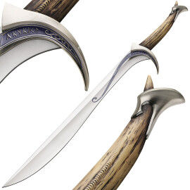 Sting is the magical short sword from the legendary city of Gondolin. On their harrowing journey, Bilbo and his companions came upon a troll lair in Rhûdaur where they found two Elven swords and a knife. Bilbo claimed the latter for himself, which, to someone of his stature, was more of a sword. It ultimately saved his life in his fight against the Giant Spiders of Mirkwood, and he wielded it through most of his quest. Sixty years later, Bilbo bestowed the sword upon his nephew Frodo.