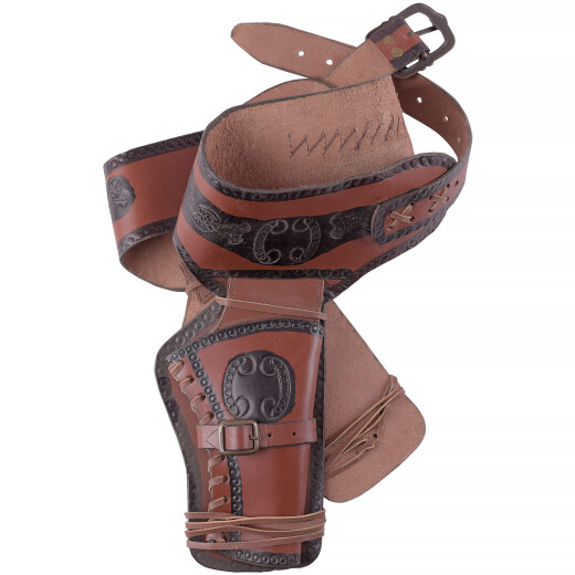 With this replica of an original pistol belt from the American Wild West, your Colts will be been stowed away stylishly and safely. The belt is made of high quality leather and has very beautiful and elaborate embossing in the paisley pattern. On the back there are cartridge loops for 24 cartridges.